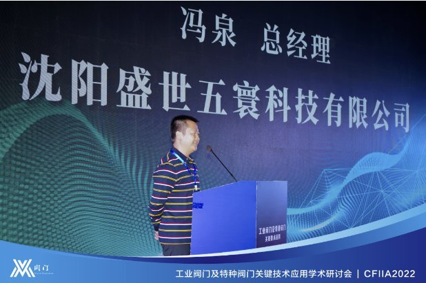 沈阳盛世五寰科技有限公司总经理冯泉出席本次大会并致辞。冯泉讲述了盛世五寰的跨越式发展历程,并介绍了公司近年来在推进阀门技术研发、推进阀门行业发展上所取得的突破。