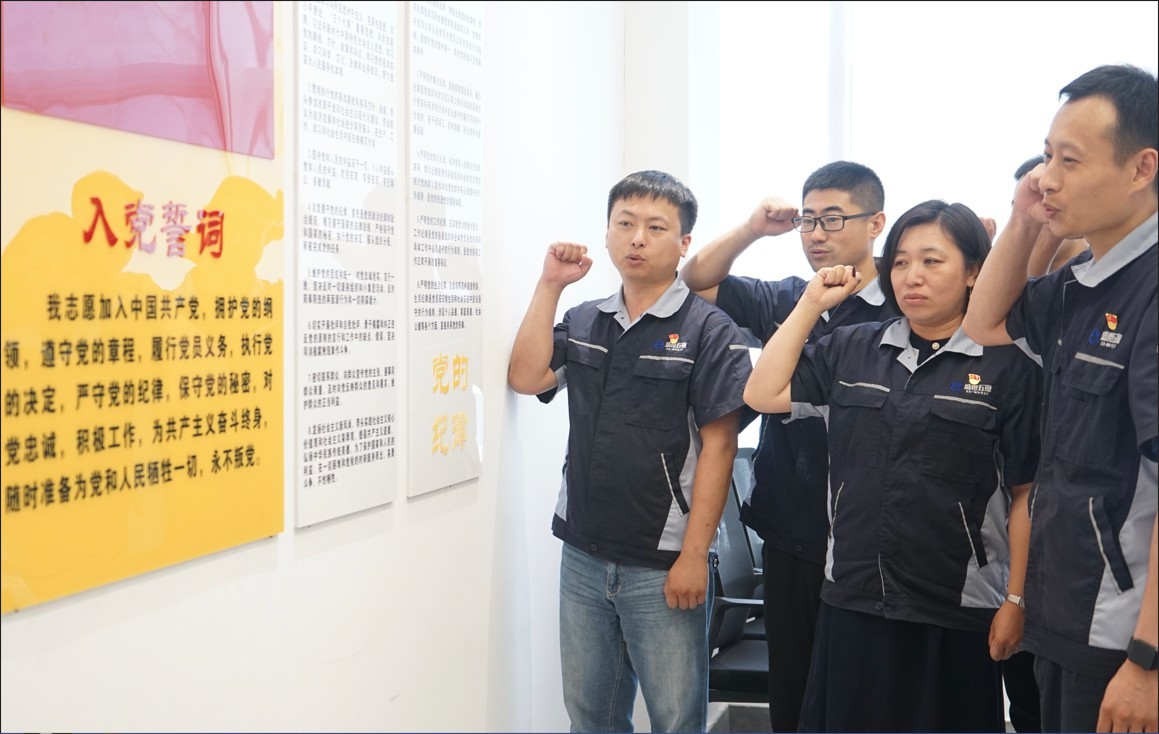 作为党的生日献礼和不忘初心、使命的勉励。6月30日,全体党员参加了“重温入党誓词”活动。党旗下,誓词前,更加坚定了大家做合格党员的理想信念和不变追求。公司党组织也同样明确了今后一段时期的工作方向,着力在党建引领的企业文化深耕,着力在党务工作服务中心大局的三个维度实施,着力在党员发展促进组织规模扩大的全面推动。为“一个奋斗目标,两个能力提升,做有价值的科技型制造企业”而努力奋斗,力争在全面振兴新突破行动中贡献盛世五寰力量。